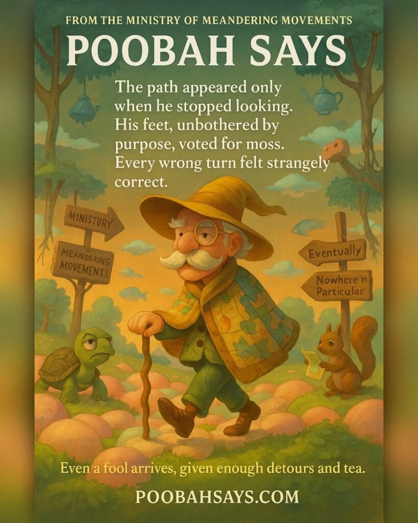 Today is World Sauntering Day, which means rushing is strictly prohibited. Poobah took five steps, had three cups of tea, and somehow still made history. Slow down. The moss knows where it’s going.